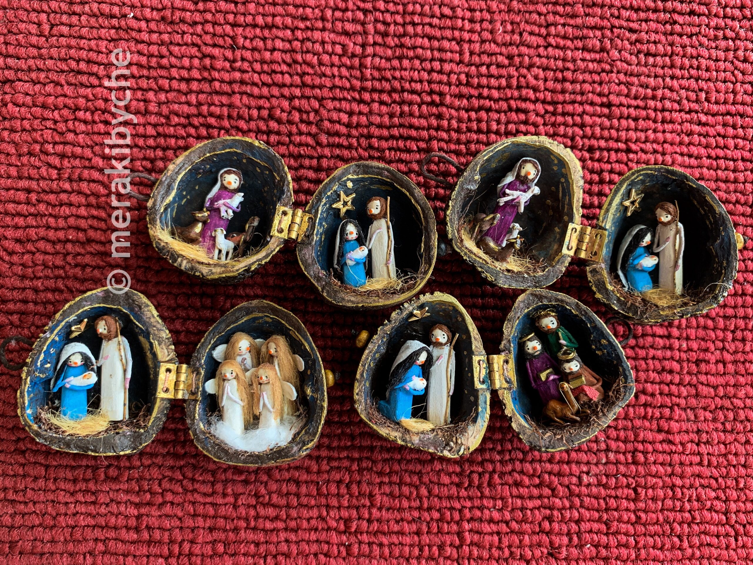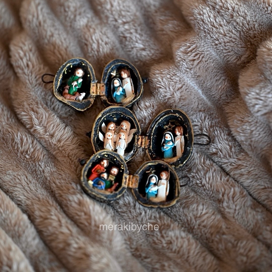 Miniature nativity scene inside a nutshell